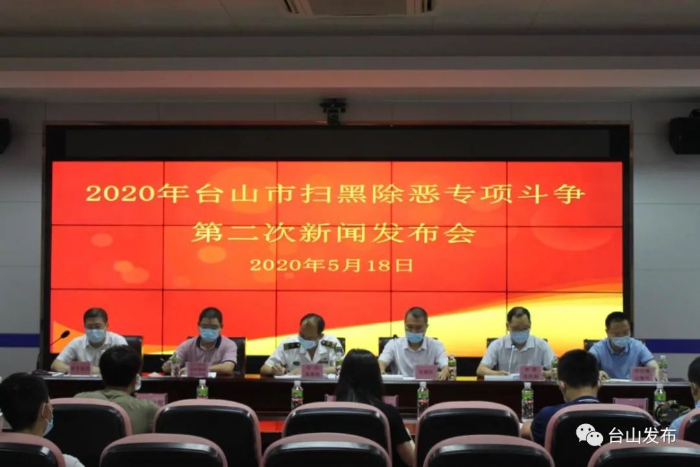 發布會上,市掃黑辦、市交通運輸局、市市場監督管理局、江門市生態環境局臺山分局、江門臺山海事處相關新聞發言人分別通報了掃黑除惡專項斗爭工作開展情況,并現場回答記者提問。