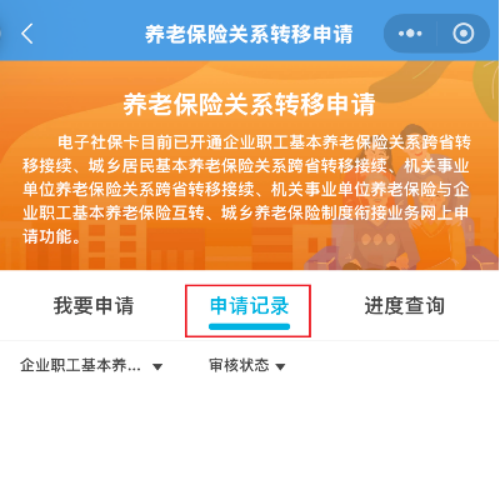 通過微信/支付寶進入“電子社保卡”小程序→選擇首頁的“人社辦事”模塊→點擊“社會保障”模塊中的養老保險關系轉移→選擇“申請記錄”或“進度查詢”,即可進入查詢頁面。