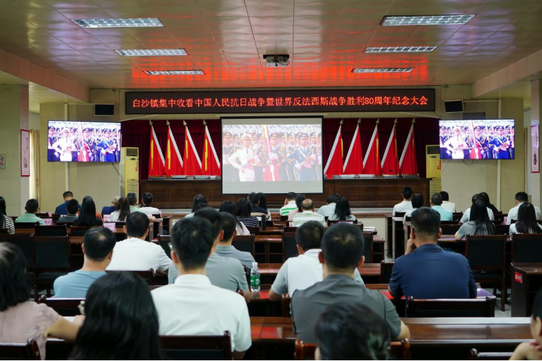 為銘記歷史、緬懷先烈,弘揚偉大抗戰精神,9月3日上午,白沙鎮組織全體干部職工在鎮政府禮堂集中收看中國人民抗日戰爭暨世界反法西斯戰爭勝利80周年紀念大會現場直播盛況。