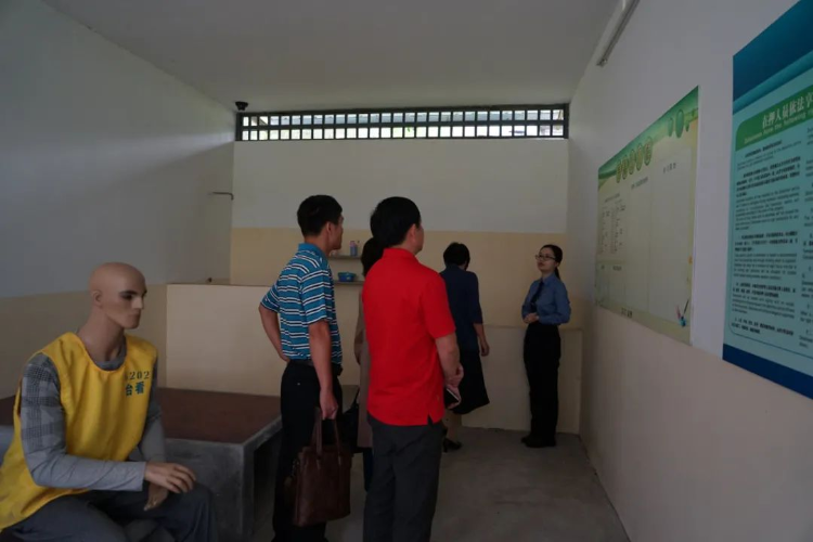 模擬監倉設置有還原真實的場景,張貼有在押人員的時間安排表,以高度仿真的場景讓參觀者感受到犯罪分子被剝奪人身自由后的境況,起到震懾警示的效果。