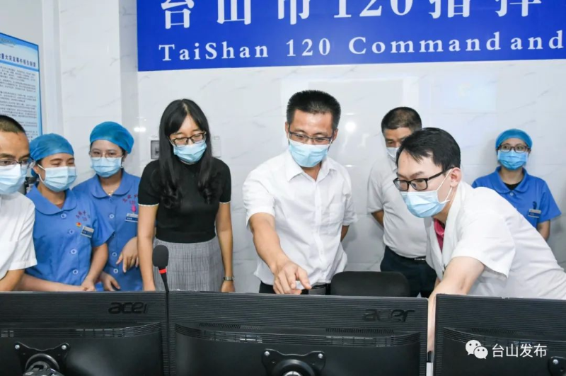 在市人民醫院,謝少謀與醫護人員一一握手,親切交談,詳細了解醫院的運作和科室值班情況,并通過120急救指揮調度系統實時連線外出接診人員,對大家在“雙節”期間放棄與家人團聚,堅守崗位表示感謝。謝少謀希望廣大醫務工作者大力弘揚抗疫精神,總結提煉可復制、可推廣的臺山防疫經驗,提升各級醫療機構應急救治能力,更好地為人民健康服務。他強調,假期期間,醫療機構要妥善安排人員值守,滿足群眾醫療服務需求。此外,要強化部門聯動,盡快把急救指揮調度系統納入“十五合一”應急指揮平臺,通過科技手段,引領醫療服務能力提升,確?;颊咴诘谝粫r間得到有效救治。