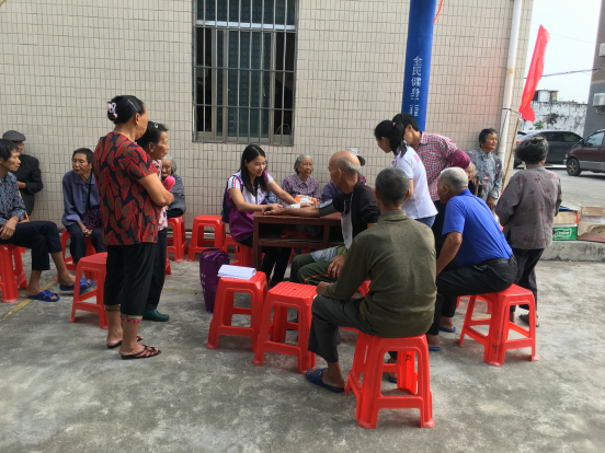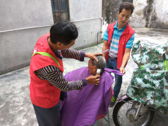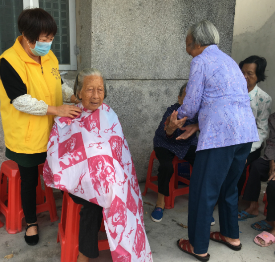 在馬山北斗村,村干部與社工聯合開展主題為“九九重陽齊參與,尊老敬老義起來”的敬老愛老活動,為有需要的長者理發和測量血壓,讓長者感受到社會的關愛,同時提升長者的保健意識。