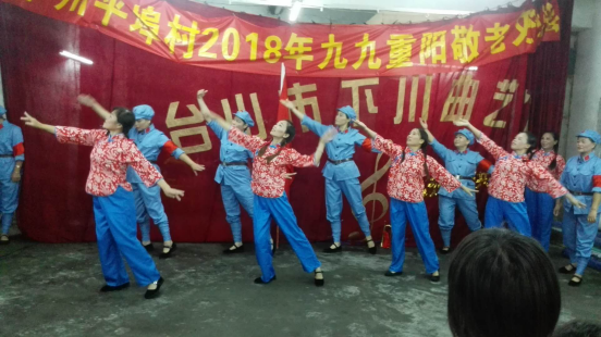 水平平埠村舉辦2018年九九重陽敬老晚宴。夜間,平埠的老者觀看了下川曲藝社精心準備的節目。