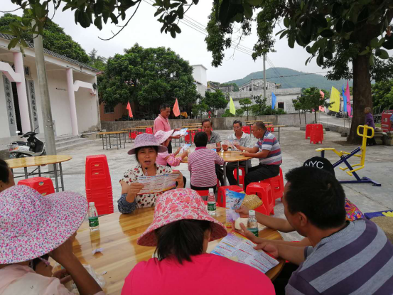 在飛東村民齊聚的餐桌上,村委會成員還派發掃黑除惡的宣傳小冊子,進一步提高群眾對掃黑除惡專項斗爭工作的知曉率和參與度,營造良好的社會氛圍。