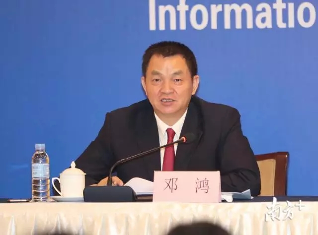 廣東省政府新聞辦公室副主任鄧鴻主持新聞發布會。
