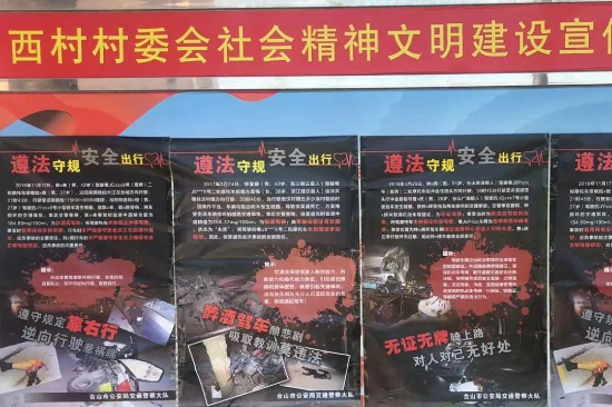 臺山交警通過張貼宣傳海報的方式,向群眾詳細介紹摩電超員載人、闖紅燈、無牌無證以及不戴安全頭盔等違法行為可能導致的嚴重后果,倡導群眾自覺遵守交通規則,摒棄交通陋習。