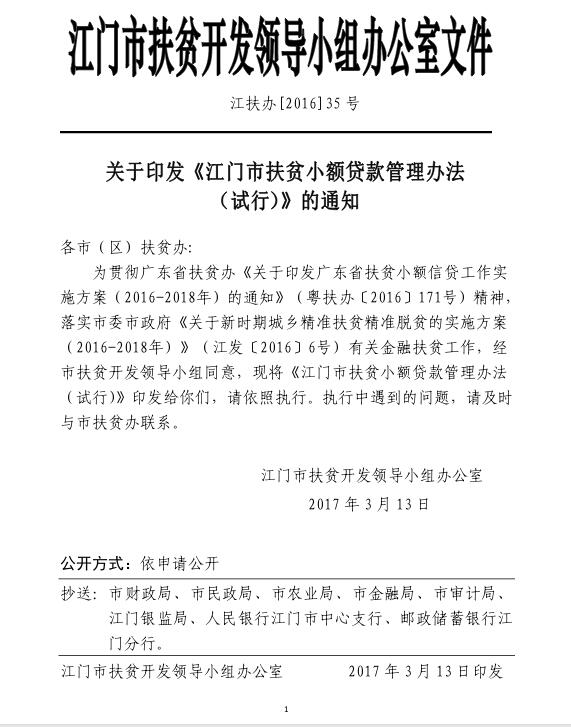 關于印發《江門市扶貧小額貸款管理辦法試行》的通知