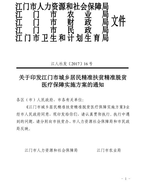 江門市城鄉居民精準扶貧精準脫貧醫療保障實施方案