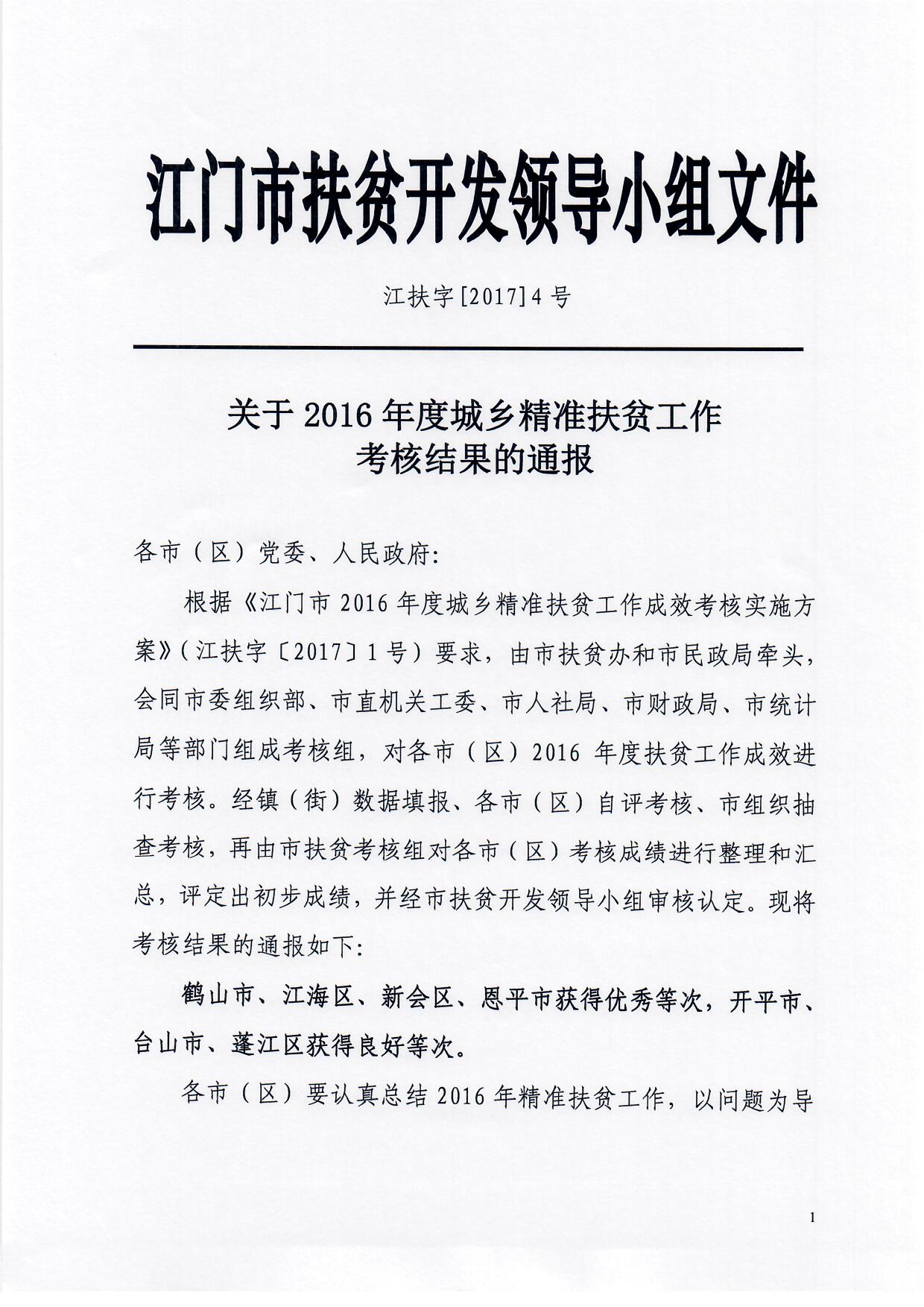 江扶字[2017]4號_江扶字[2017]4號關于2016年度城鄉精準扶貧工作考核結果的通報