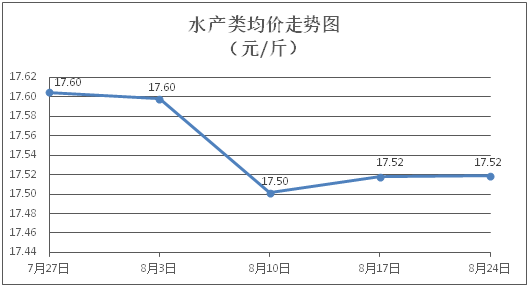 水產類商品價格升降互現。所監測的9種水產商品價格波動情況為4漲4跌1平,綜合均價為每斤17.52元,環比上漲0.01%。其中:草魚、鯽魚、羅非魚、基圍蝦零售均價分別為每斤11.35元、14.33元、8.98元、29.38元,環比分別上漲0.27%、下降0.83%、上漲0.11%、下降0.37%。