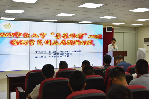 為深入推進“粵菜師傅”工程,弘揚粵菜文化,11月20日下午,臺山市人力資源和社會保障局、臺山市供銷合作聯社主辦聯合在廣東廚藝技工學校舉辦臺山市2019年“粵菜師傅”工程培訓學員創業店授牌儀式暨廣東臺山-廣西崇左“粵菜師傅”學員廚藝交流比賽活動。