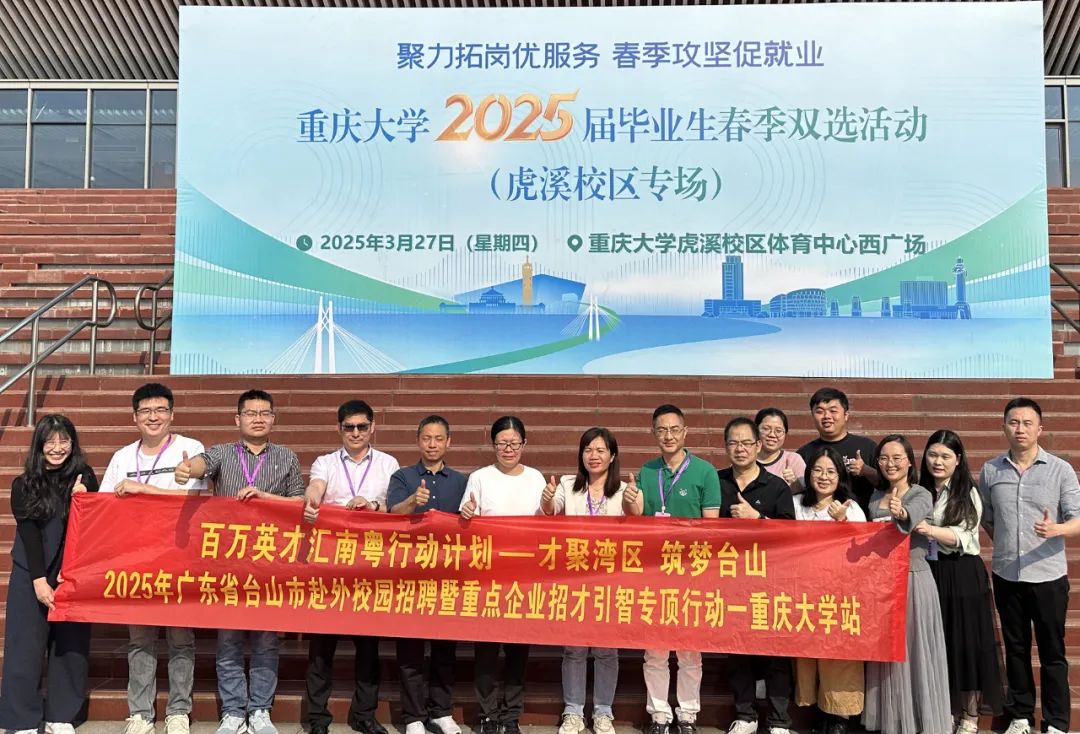 為深入貫徹落實黨中央、國務院關于推動高質量充分就業的決策部署,扎實推進省委、省政府“百萬英才匯南粵”行動計劃,臺山市人社局在“2025年廣東省臺山市赴外校園招聘暨重點企業招才引智專項行動 ”(貴州站)活動結束后,立即攜重點企業奔赴重慶站參加專場招聘會、座談會。