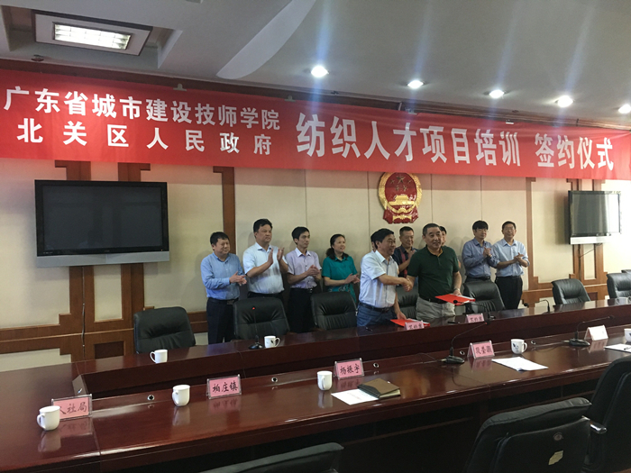 5月18日上午,廣東省城市建設技師學院與河南省安陽市北關區政府簽訂“紡織人才”培訓項目合作協議。該項目通過整合安陽和廣東兩地行業板塊、教育板塊的資源,針對安陽嬰裝產業目前面臨的同質化嚴重、品牌附加值較低以及企業整體效益較差等發展瓶頸問題進行定制化的專業培訓,助力安陽紡織服裝行業的經濟結構調整和產業轉型升級,實現廣東河南兩地資源優勢互補、共享市場經濟碩果。