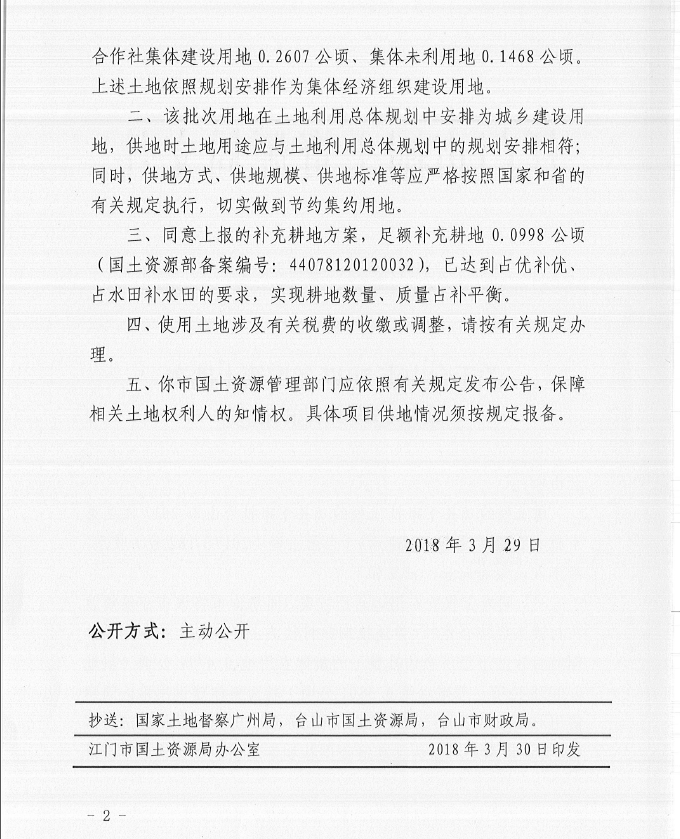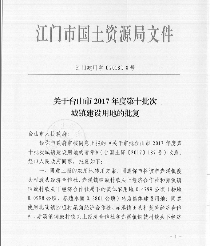 關于臺山市2017年度第十批次城鎮建設用地的批復