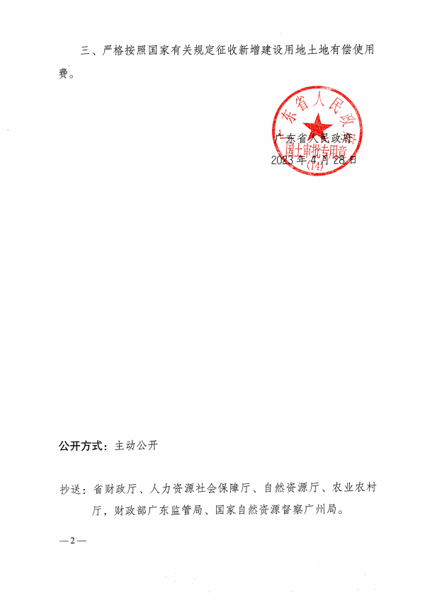 廣東省人民政府關于臺山市2023年度第九批次城鎮建設用地的批復—粵府土審(14)〔2023〕51號