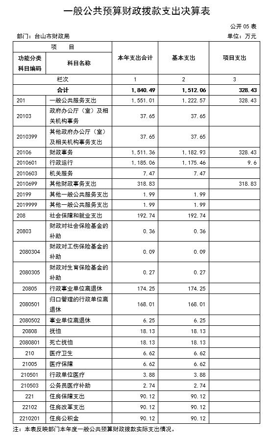 臺山市財政局2016年度總支出1,972.72萬元,其中本年支出1,840.49萬元。具體情況如下: