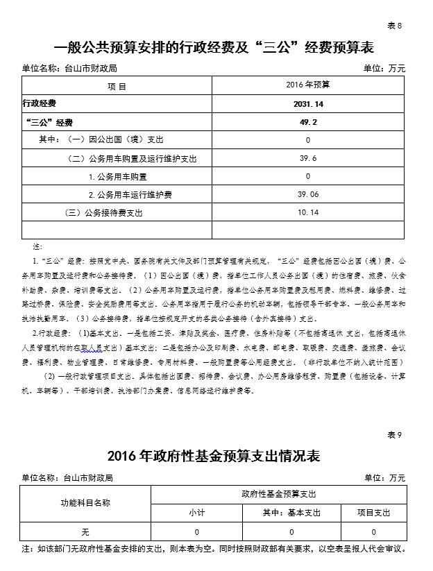 八、一般公共預算安排的行政經費及“三公”經費預算表