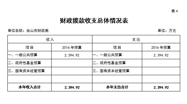 (一)本部門預算為匯總預算,包括:臺山市財政局本級預算,以及納入編制范圍的下屬單位預算。下屬單位具體包括:臺山市政府投融資和債務工作辦公室,臺山市財政投資審核中心,臺山市財政國庫支付中心。