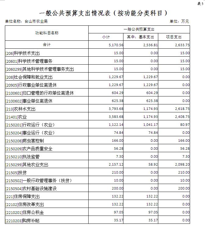 五、一般公共預(yù)算支出情況表(按功能分類科目)