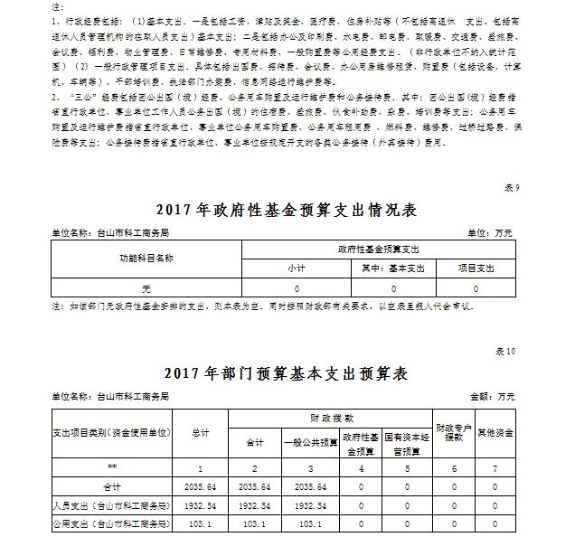 (一)本部門預(yù)算為匯總預(yù)算,包括:局本級(jí)預(yù)算,以及納入編制范圍的下屬單位預(yù)算。下屬單位具體包括:臺(tái)山市招商局。