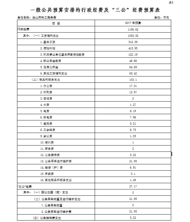 八、一般公共預(yù)算安排的行政經(jīng)費(fèi)及“三公”經(jīng)費(fèi)預(yù)算表