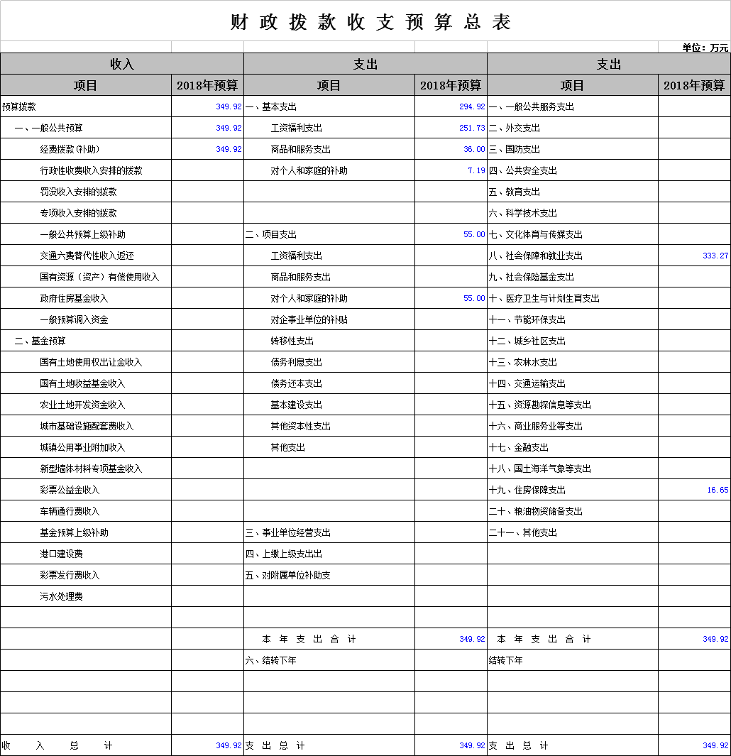 2018年一般公共預(yù)算安排的支出共349.92萬(wàn)元。其中: