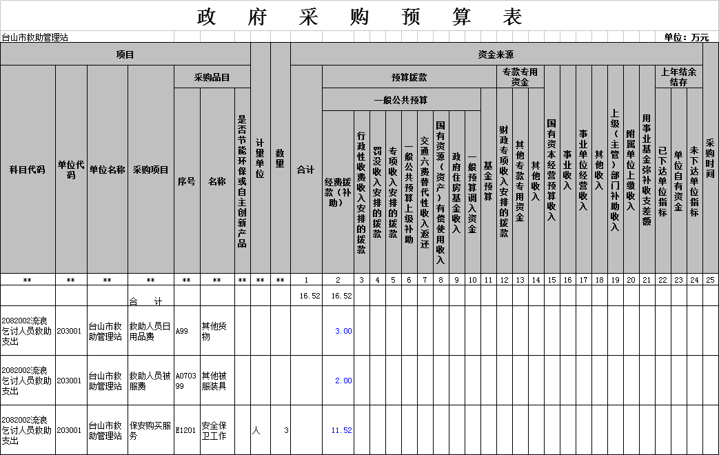 臺(tái)山市救助管理站2018年政府采購(gòu)預(yù)算16.52萬元。