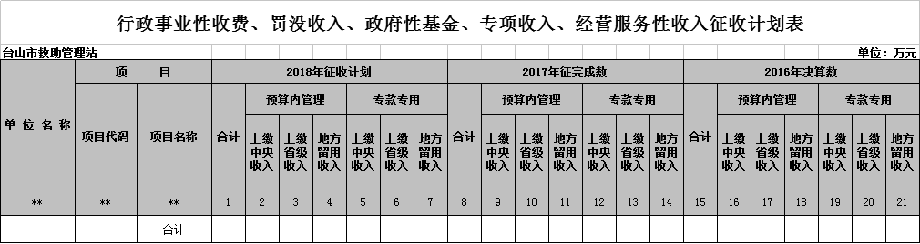 預(yù)算11表:行政事業(yè)性收費(fèi)、罰沒收入、政府性基金、專項(xiàng)收入、經(jīng)營(yíng)服務(wù)性收入征收計(jì)劃表