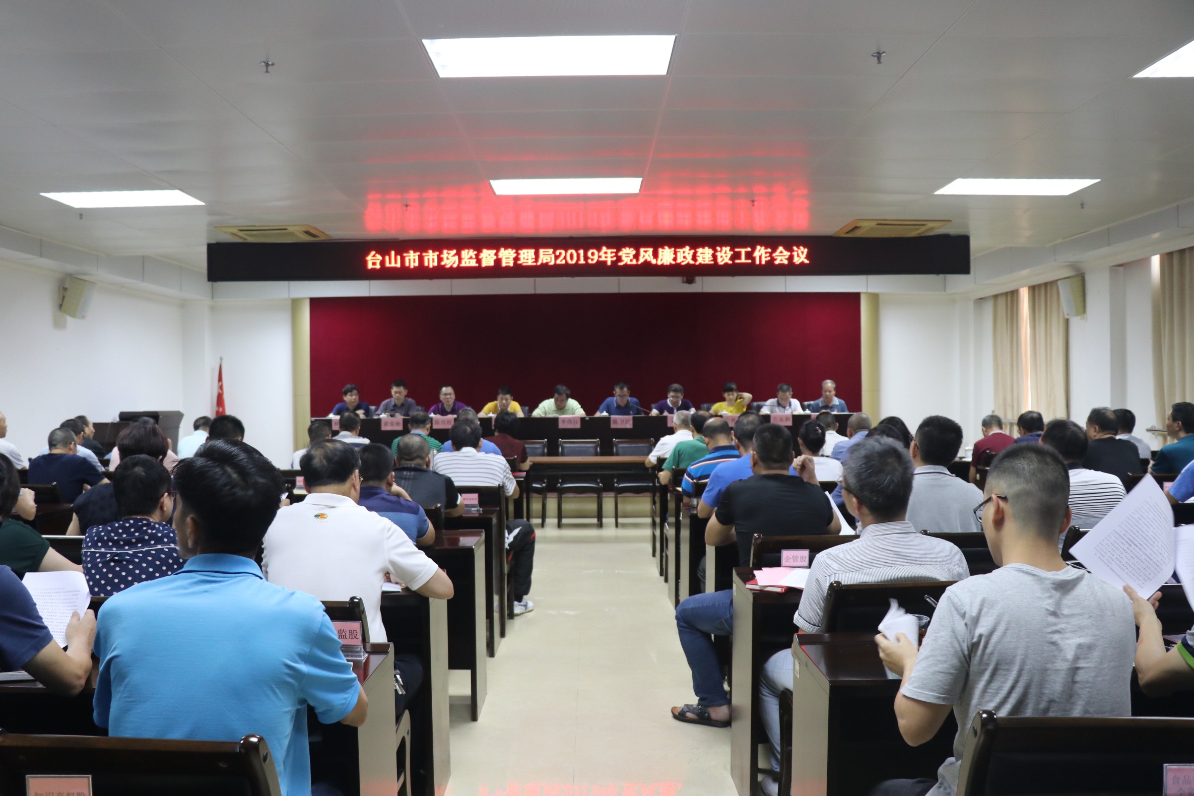 5月24日下午,我局召開黨風廉政建設工作會議,傳達貫徹十九屆中紀委三次全會、十二屆省紀委四次全會、十三屆市紀委四次全會精神、臺山市政府全體會議暨廉政工作會議精神,通報上級曝光的典型違法違紀行為,總結我局2018年黨風廉政建設工作,研究部署我局2019年黨風廉政工作任務。市局機關中層以上干部、各基層所負責人、副所長共100多人參加了會議。會議由局黨組成員、副局長陳衛民主持。