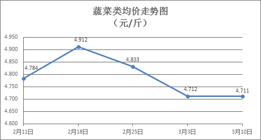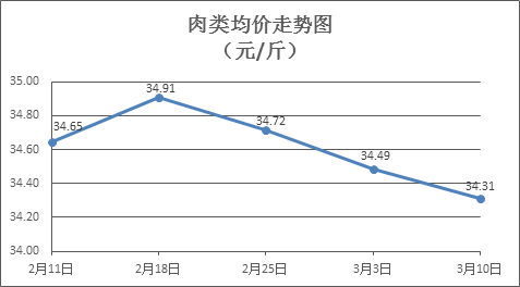 據本市21家農貿市場監測數據顯示,上周(3月4日至3月10日,下同)市場上各類“菜籃子”商品供應充足,所監測的7大類“菜籃子”商品價格均下跌。其中:糧油類商品價格穩中略降、蔬菜類、水產類商品價格小幅波動,肉禽蛋類、水果類商品價格總體略降。近期氣溫回升,各類農產品供應充足,價格總體略降,預計后期供應持續穩定價格窄幅盤整。