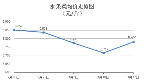 水果類商品價格小幅波動。上周所監測的6種水果商品價格波動情況為1漲5跌,綜合零售均價為6.782元/斤,環比上漲0.97%。其中橙子、蘋果、葡萄零售均價分別為每斤5.19元、7.39元、15.84元,環比分別下降0.19%、下降0.54%、上漲3.33%。