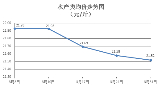 水產(chǎn)類商品價格普遍下降。所監(jiān)測的10種水產(chǎn)商品價格波動情況為1漲8跌1平,綜合均價為每斤21.52元,環(huán)比下降0.28%。其中:草魚、鯽魚、羅非魚、基圍蝦零售均價分別為每斤11.32元、14.25元、8.79元、34.34元,環(huán)比分別下降0.26%、下降0.28%、下降1.57%、下降0.95%。