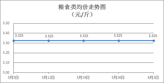 糧食類商品價格基本平穩。所監測的6種糧食類商品價格均持平,零售均價為每斤3.325元。其中:晚秈米、絲苗米、富強粉零售均價分別為每斤3.26元、3.56元、3.36元,環比均持平。