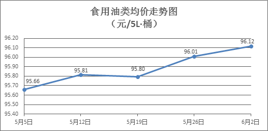 食用油類商品價格總體微漲。所監測的9種食用油(5L裝)商品價格波動情況為4漲2跌3平,綜合零售均價為每桶96.12元,環比上漲0.11%。其中:菜籽油、玉米油零售均價分別為每桶73.38元、76.85元,環比分別上漲0.22%、上漲0.52%。