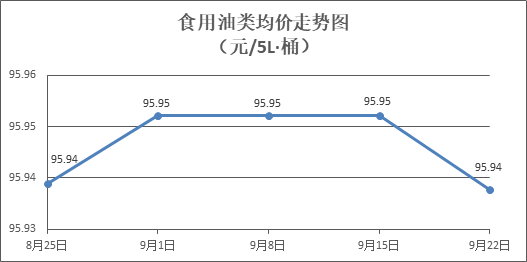 食用油類商品價格基本平穩。所監測的9種食用油(5L裝)商品價格波動情況為3跌6平,綜合零售均價為每桶95.94元,環比下降0.01%。其中:魯花花生油、金龍魚調和油零售均價分別為每桶154.40元、71.56元,環比持平、下降0.01%。
