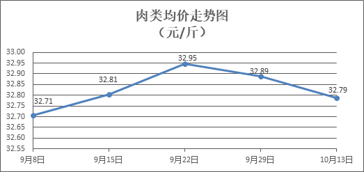 肉類商品價格有所下調。所監測的8種肉類商品價格均下跌,綜合零售均價為每斤32.79元,環比下降0.30%。其中:排骨、精瘦肉、牛肉、帶骨羊肉零售均價分別為每斤32.72元、20.37元、45.67元、41.48元,環比分別下降0.40%、下降0.78%、下降0.11%、下降0.10%。