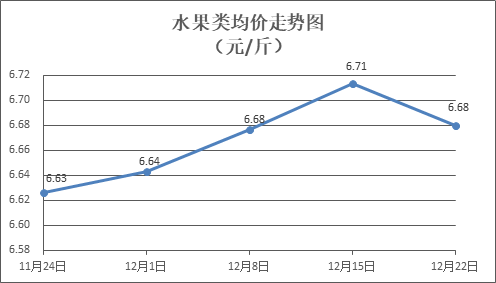 水果類商品價格普遍下降。所監測的6種水果商品價格波動情況為4跌2平,綜合零售均價為每斤6.68元,環比下降0.50%。其中橙子、蘋果、葡萄零售均價分別為每斤5.96元、7.43元、13.96元,環比分別下降0.50%、下降0.40%、下降0.71%。