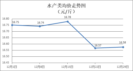 水產類商品價格窄幅盤整。所監測的9種水產商品價格波動情況為3漲5跌1平,綜合均價為每斤16.58元,環比上漲0.05%。其中:草魚、鯽魚、羅非魚、鳙魚、基圍蝦零售均價分別為每斤11.07元、13.93元、9.11元、10.66元、29.55元,環比分別持平、下降0.43%、下降0.11%、下降0.93%、上漲0.34%。