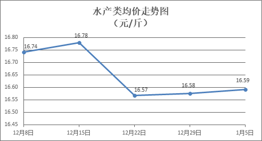 水產類商品價格小幅波動。所監測的9種水產商品價格波動情況為4漲5跌,綜合均價為每斤16.59元,環比上漲0.09%。其中:草魚、鯽魚、羅非魚、鳙魚、基圍蝦零售均價分別為每斤11.02元、14.03元、9.09元、10.67元、29.77元,環比分別下降0.45%、上漲0.72%、下降0.22%、上漲0.09%、上漲0.74%。