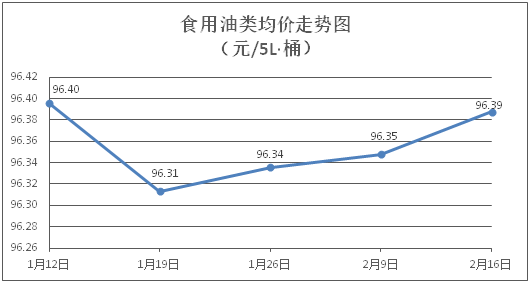 食用油類商品價格基本平穩。所監測的9種食用油(5L裝)商品價格波動情況為2漲3跌4平,綜合零售均價為每桶96.39元,環比上漲0.04%。其中:魯花花生油、玉米油零售均價為每桶156.04元、76.67元,環比分別上漲0.05%、下降0.09%。