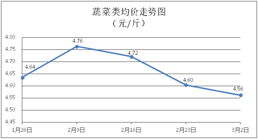 據本市21家農貿市場監測數據顯示,上周(2月24日至3月2日)市場上各類“菜籃子”商品供應充足,所監測的7大類“菜籃子”商品價格環比總體表現為1漲4跌2平。其中:糧油類商品價格基本平穩,肉禽蛋類、蔬菜類商品價格總體略降,水果類、水產類價格窄幅盤整。