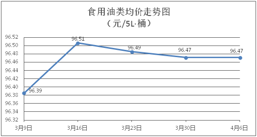 食用油類商品價格基本平穩。所監測的9種食用油(5L裝)商品價格均持平,綜合零售均價為每桶96.47元。其中:魯花花生油、金龍魚調和油零售均價為每桶155.83元、72.04元,環比均持平。