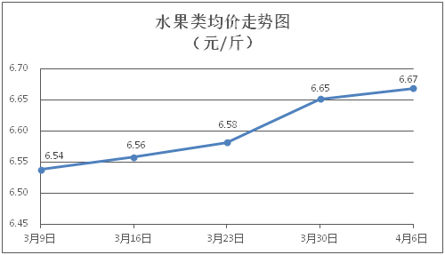 水果類商品價格總體略漲。所監測的6種水果商品價格波動情況為2漲2跌2平,綜合零售均價為每斤6.67元,環比上漲0.25%。其中橙子、香蕉、葡萄零售均價分別為每斤6.12元、3.26元、14.08元,環比分別下降0.81%、上漲0.31%、上漲1.08%。