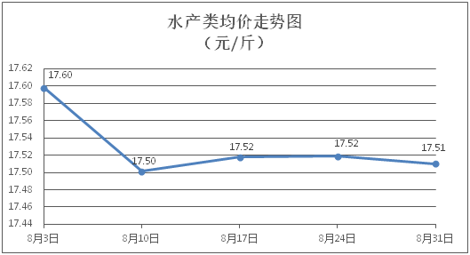 水產類商品價格總體略降。所監測的9種水產商品價格波動情況為3漲5跌1平,綜合均價為每斤17.51元,環比下降0.05%。其中:草魚、鯽魚、羅非魚、基圍蝦零售均價分別為每斤11.46元、14.25元、8.94元、29.35元,環比分別上漲0.97%、下降0.56%、下降0.45%、下降0.10%。