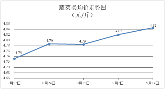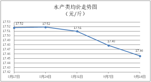 據本市21家農貿市場監測數據顯示,上周(9月8日至9月14日)市場上各類“菜籃子”商品供應充足,所監測的7大類“菜籃子”商品價格環比總體表現為2漲3跌2平。其中:糧油類、禽蛋類商品價格基本平穩,肉菜類商品價格總體略漲,水果類、水產類商品價格小幅下降。