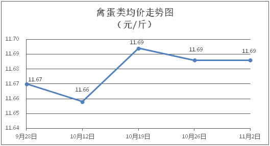 禽蛋類商品價(jià)格走勢較穩(wěn)。所監(jiān)測的5種禽蛋類商品價(jià)格均持平,綜合零售均價(jià)為每斤11.69元。其中:白條雞、白條鴨零售均價(jià)分別為每斤20.88元、15.20元,環(huán)比均持平;雞蛋、鴨蛋零售均價(jià)分別為每斤6.39元、7.07元,環(huán)比均持平。