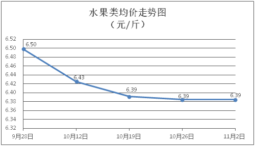 水果類商品價(jià)格微幅波動(dòng)。所監(jiān)測的6種水果商品價(jià)格波動(dòng)情況為3漲2跌1平,綜合零售均價(jià)為每斤6.39元,環(huán)比持平。其中橙子、蘋果、西瓜零售均價(jià)分別為每斤7.34元、7.99元、3.20元,環(huán)比分別下降0.14%、上漲0.13%、上漲0.31%。