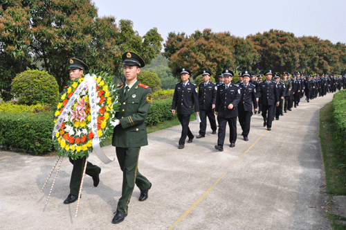 為深切緬懷革命先烈,弘揚先烈們的無私奉獻和大無畏革命精神,4月1日上午,市委常委、政法委書記、公安局長姚亮帶領公安局黨委成員班子,局機關正職領導、基層民警代表及武警官兵等60多人來到臺山富山華僑永久墓園,深切緬懷為保衛國家財產而英勇犧牲的革命烈士李啟榮同志。