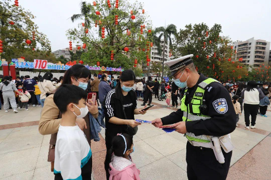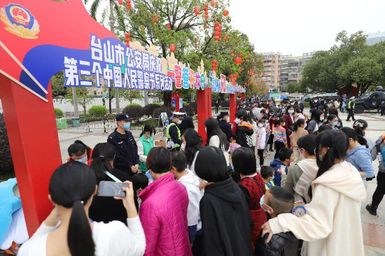 臺山市公安局結合工作實際,在全市17個鎮(街)同步開展110警營開放日宣傳活動,派發相關宣傳單張,讓廣大市民群眾深入了解和支持公安工作,進一步和諧警民關系。