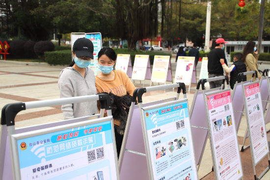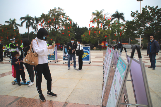 在宣傳互動區,民警通過設立咨詢臺、互動問答、派發宣傳單張、擺放宣傳展板、播放安全防范視頻等形式,重點展示了過去一年來,臺山公安在智慧新指揮、“四個一”體系建設應用,打擊犯罪、全民反詐、全民禁毒、安全出行、服務群眾等方面的亮點成果。